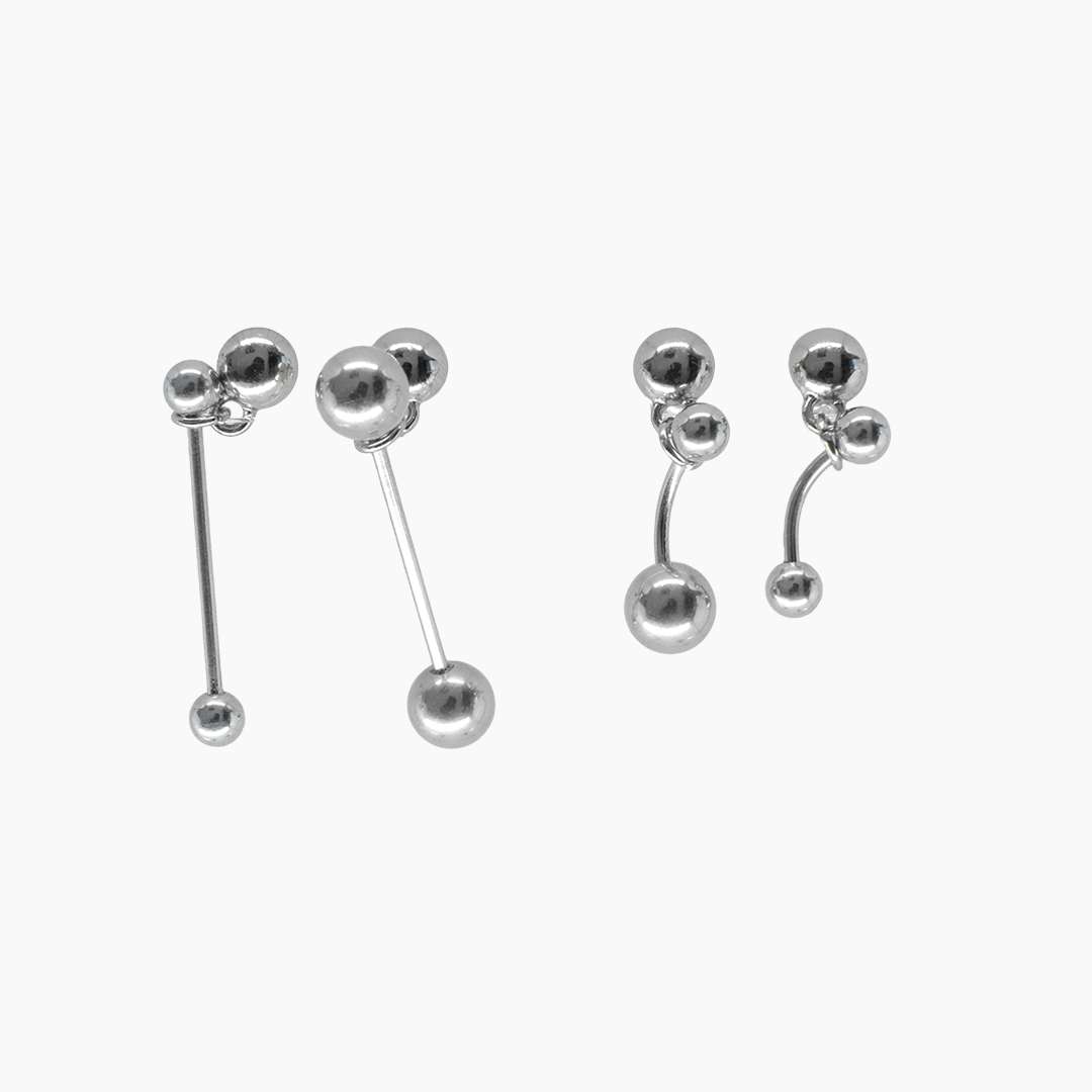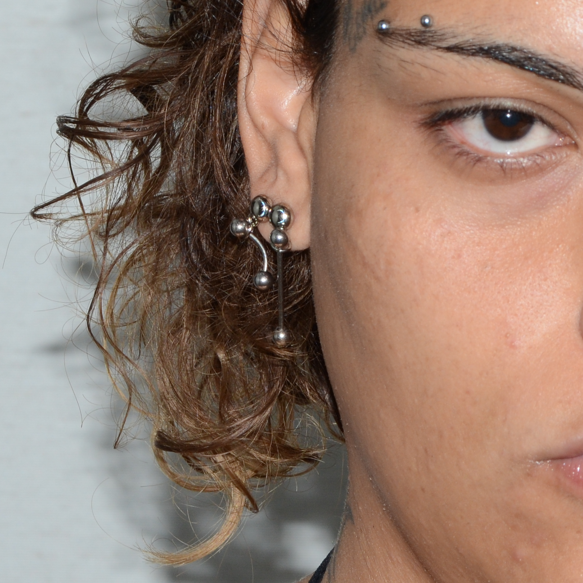 brincos produzidos artesanalmente com bases em aço sem níquel e piercings em aço inoxidáveis.